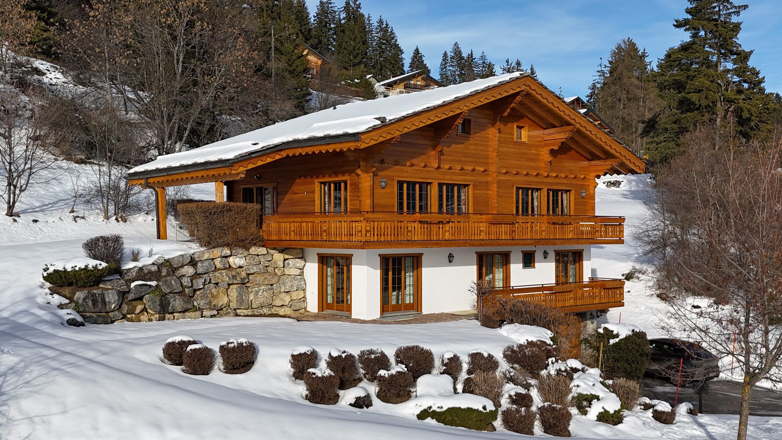 Beautiful furnished chalet on route de l'Avenire, approx. 5 km from the center of Crans. Quiet, sunny location with beautiful views of the Alps.