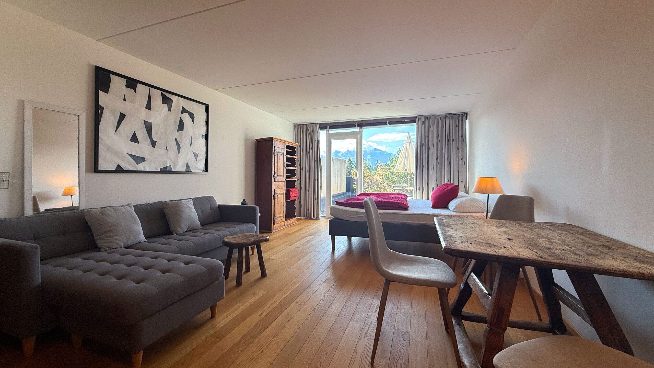 This property is sold in the form of a real estate company (SI), meaning the acquisition is made by purchasing the shares of the company that owns the apartment. The studio can be purchased as a secondary residence, and foreign buyers are authorized to acquire it — making this a rare opportunity on the Crans-Montana property market. Please note that this property is currently leased for the period from December 1, 2025, to April 20, 2026.