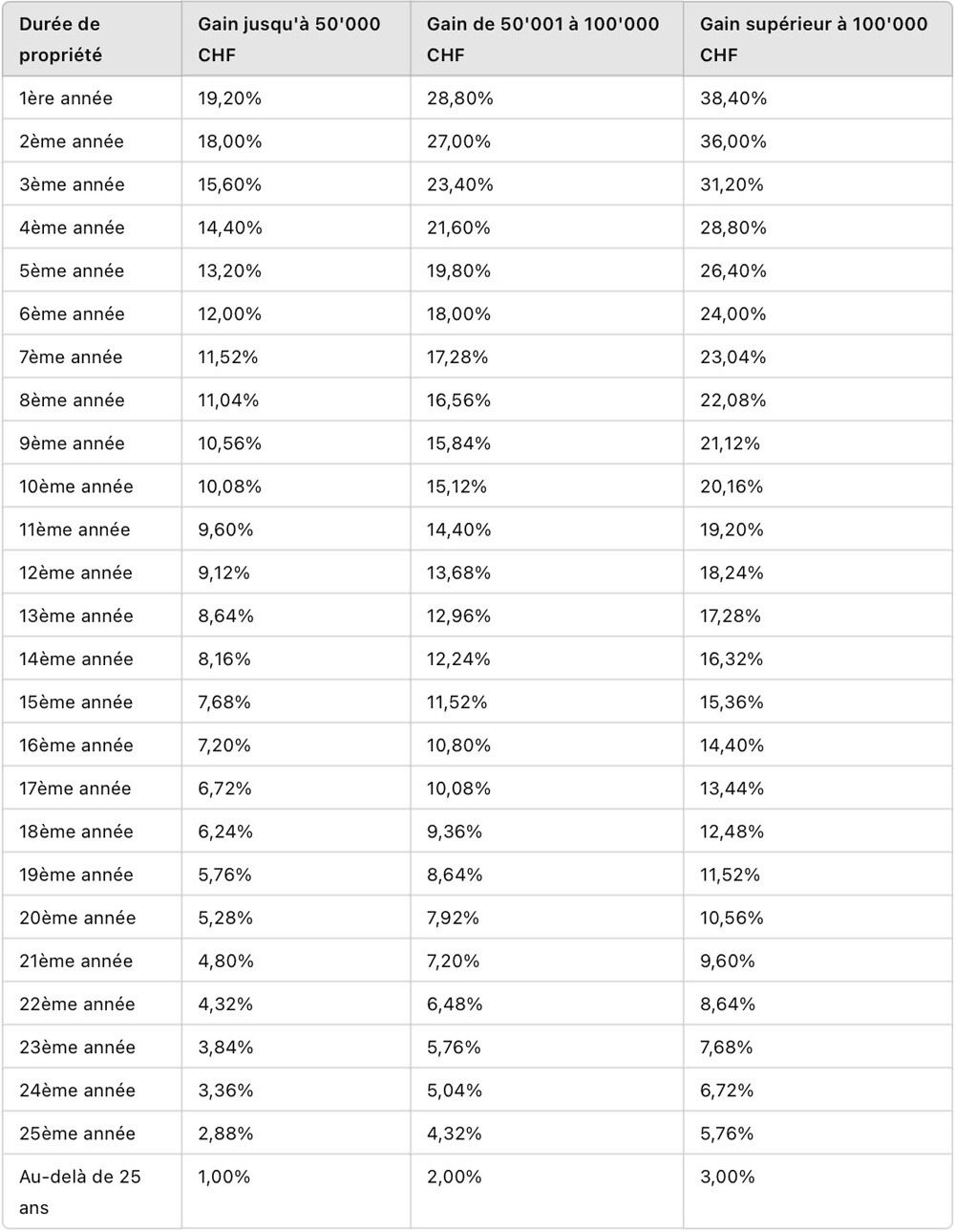 Taux d'imposition en fonction de la durée de détention