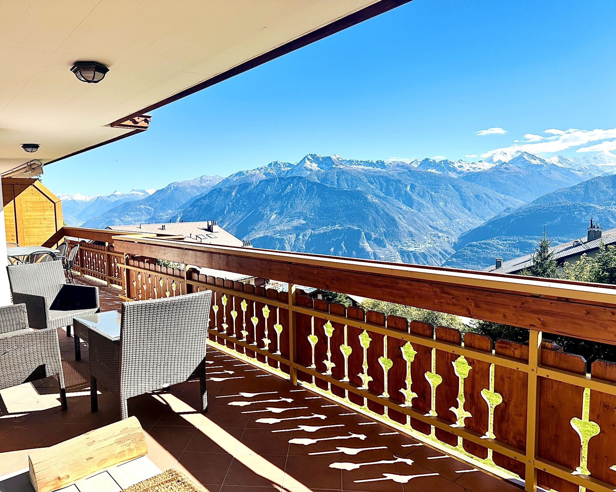 L’appartement bénéficie d’une belle exposition sud, offrant une superbe luminosité tout au long de la journée. Son balcon vous permettra de profiter d’une vue imprenable sur les montagnes environnantes. Spacieux et confortable, il constitue le lieu idéal pour un séjour en famille à Crans-Montana.