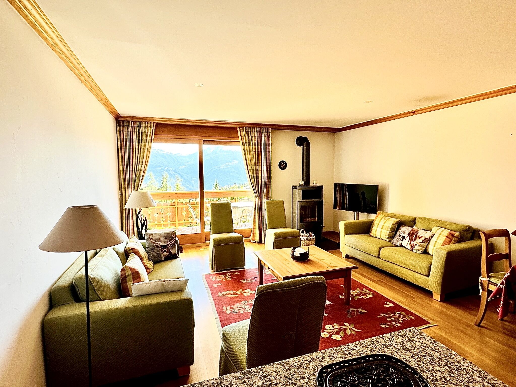 • Un séjour - salle à manger avec poêle suédois et accès au balcon Sud;